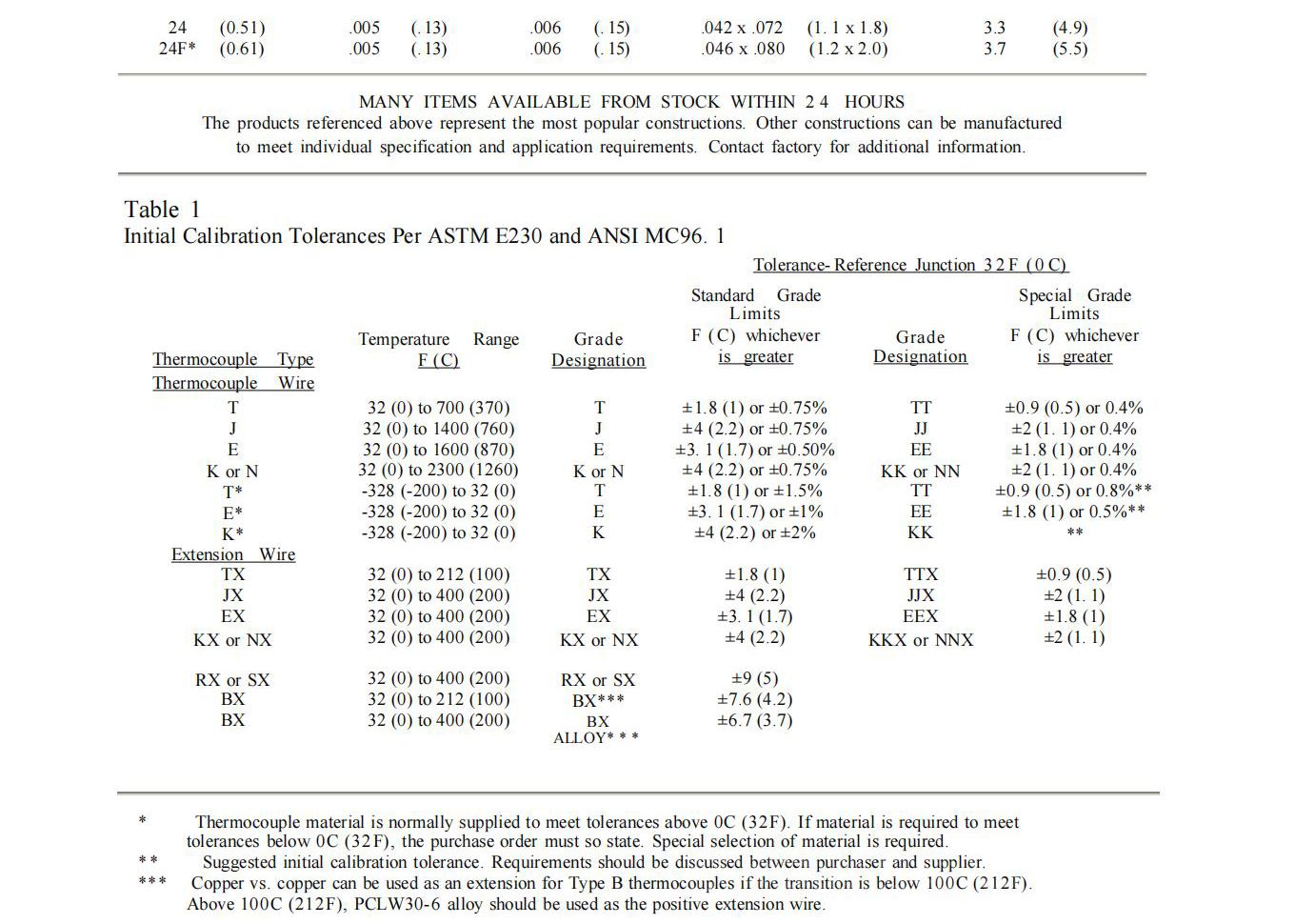 导体实心或绞合热电偶导线Astm e230&ANSI Mc96.1
