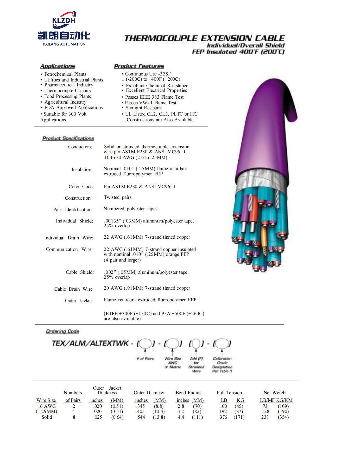 ²úÆ·¹æ¸ñ£ºµ¼Ì壺µ¼Ì壺¹ÌÌå»òÁ´×´ÈȵçżÑÓÉì µçÏß·ûºÏASTM E230ºÍANSI MC96¡£